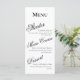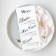 The bold “Menu” heading creates a clean focal point, while the graceful script for each course adds a soft, luxurious touch. Crisp black typography against a classic white background ensures this design complements formal, traditional, black-tie, and modern minimalist weddings effortlessly.