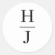 Celebrate your union with our Elegant Black and White Wedding Monogram Classic Round Sticker, a perfect emblem of your love story. This sophisticated design features the intertwined initials "H" and "J", symbolising the beautiful joining of two lives. Crafted with a minimalist aesthetic, this sticker blends contemporary elegance with timeless charm, making it an ideal choice for adding a personal touch to your wedding invitations or thank you notes. The clean, simple typography offers a modern twist on classic wedding monograms, providing a unique and formal visual statement that enhances any wedding theme, from a luxurious spring celebration to a romantic, minimalist event.