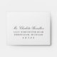 Custom A2 wedding response card envelopes feature an elegant script name and classic block font return address text that can be personalised. Black and white colour scheme can be modified.