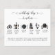 Elegant modern black and white wedding timeline program with beautiful timeline icon images in black, white, grey and taupe hues and elegant modern handwritten calligraphy details. Ability to select customise and move around timeline images and text to suit your own wedding timeline, simply drag and move. Personalise dinner image with your own initials. Back in black "background colour" (which can be changed to any other colour you like by selecting "customise further") and white text with the ability to customise back information to add wedding program and wedding party names or any other information you like.