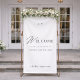 This elegant black and white wedding welcome banner features a refined minimalist design with classic serif typography and delicate script accents. The clean layout and timeless color palette create a sophisticated statement piece perfect for formal and modern weddings.