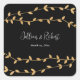 Elegant Black and White with Gold Leaves Wedding Square Sticker
