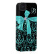 Elegant Black Aqua Damask Diamond Bow Monogram Case-Mate iPhone Case
