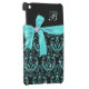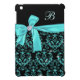 Elegant Black Aqua Damask Diamond Bow Monogram iPad Mini Case