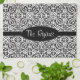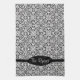 Elegant Black Baroque Damask Monogram Tea Towel