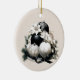 Elegant black beige ivory Christmas design with black and ivory Christmas ornaments, decoration, ivory flowers, pine branches and a black satin bow, with your personalised text message on the back of the ornament.