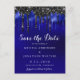 Elegant Black Blue Glitter Drips Save The Date Invitation Postcard
