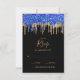 Elegant Black Blue Gold Glitter Drips Wedding RSVP Card