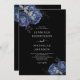 Elegant Black Blue Peonies Wedding Invitation