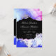A modern ink-washed wedding invitation with blue, purple, and silver. This elegant wedding invite features an artistic wash of colourful inks in amethyst and raspberry; accented with silver. Easily add your wedding details to the template using Zazzle's customisation tool. Elegant Black Blue Purple Silver Formal Wedding Invitation.