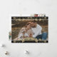 Elegant black photo New Year card featuring a watercolor painting of poinsettia, holly and berries. Easily personalize this black holiday card with your photo and text.
