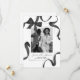 These wedding save the date cards feature a simple white background, with a photo centrepiece adorned by a beautiful black watercolor ribbon and bow. On the back is another photo and further details about your future wedding.