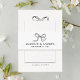Elegant wedding invitation belly band featuring a delicate hand-drawn black bow at the top on a white background. The couple’s names and wedding date are displayed below in classic black serif lettering, creating a timeless and refined look. Perfect for modern, romantic, or black-tie weddings, this minimalist belly band adds a sophisticated finishing touch to your wedding stationery suite. Personalise with your details to beautifully tie your invitations together.