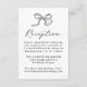 Guide your guests with timeless elegance using this black bow wedding reception card. Featuring a delicate, hand-drawn black bow at the top and “Reception” in graceful calligraphy, this insert allows couples to share important details about the wedding reception, including the venue, start time, and wedding website. The minimalist black and white design is perfect for black-tie, formal, or modern romantic weddings.