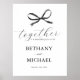 Minimalist wedding welcome poster sign featuring a crisp white background, a elegant black watercolor bow, and a text template that is easy to personalise.