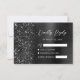 Elegant Black Brushed Metal Glitter Script Wedding RSVP Card