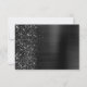 This elegant modern wedding RSVP card features a black faux diamond glitter border on a black faux brushed metal background. The text is in modern handwriting script and sans serif font, with spaces for guests' names and responses. The reverse side features a matching black brushed metal and glitter design.
