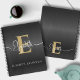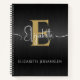 Elegant Black Brushed Metal Gold Monogram Script Notebook