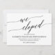 These elegant black calligraphy elopement announcement cards have a beautiful and simple design. The neutral design features a minimalist card decorated with romantic and whimsical typography. The card reads "We Eloped". Personalise the card with your marriage details, and use the template section on the back for reception information, to announce a change of address, or for any other details you would like to share.