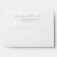 This wedding envelope features a minimalist and elegant design with a clean white background. The layout includes a sophisticated cursive script for names, followed by a simple sans-serif font for the address details, creating a modern and understated look. The black text on white provides a crisp contrast, emphasizing clarity and readability while maintaining an air of timeless sophistication. Perfect for formal occasions, this design focuses on legibility and refined aesthetics without any decorative elements, making it ideal for couples seeking a classic yet contemporary style.
