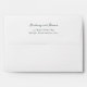 This wedding envelope features a clean, elegant design with a simple layout centered on a white background. The names are written in a flowing cursive script, while the address is presented in a clear serif font, creating a sophisticated contrast. The black text on white emphasizes minimalism and readability, making it perfect for formal correspondence. Its modern yet classic style conveys elegance and professionalism, ideal for weddings or special events.