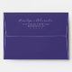This elegant wedding envelope features a minimalist design with a rich, deep purple background. The layout is vertically oriented, showcasing the names in an ornate script font and the address details in a clean serif typeface, both in contrasting white for readability. The overall style exudes sophistication and formality, making it perfect for a classic and timeless wedding theme. With ample negative space, the design emphasizes clarity and focus, ideal for those seeking understated elegance.