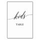This elegant black calligraphy kids table table number is perfect for a simple wedding. The neutral design features a minimalist card decorated with romantic and whimsical typography. The card prints on the front and back (double-sided). Other table numbers in the collection are sold separately.