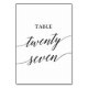 This elegant black calligraphy table twenty seven table number is perfect for a simple wedding. The neutral design features a minimalist card decorated with romantic and whimsical typography. The card prints on the front and back (double-sided). Other table numbers in the collection are sold separately.