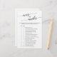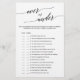 This elegant black calligraphy over or under game is perfect for a simple bridal shower. The neutral design features a minimalist game card decorated with romantic and whimsical typography. Personalise the game with your own statements!