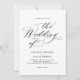 This wedding invitation features an elegant and minimalistic design, with classic black calligraphy and serif fonts on a white background.