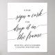 This elegant black calligraphy please sign a cork sign is perfect for a simple wedding. The neutral design features a minimalist poster decorated with romantic and whimsical typography. The sign reads "please sign a cork and drop it in the frame so we will always remember our loved ones who came".