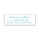 This elegant rubber stamp features a clean, minimalist design with a focus on typography. The layout is vertically centred, showcasing the names in a flowing cursive script above an address in a straightforward serif font, creating a balance of formality and approachability. The black text on a white background offers high contrast for clear visibility, making it ideal for formal correspondence or invitations. Its simple yet sophisticated style conveys professionalism and refinement, perfect for personalising documents with a touch of class.