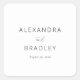 This wedding sticker features a minimalist design with a clean, white background and elegant typography. The layout includes bold serif fonts for the names, complemented by a flowing cursive script for "and," creating a sophisticated yet modern look. The ample negative space enhances readability and focus, making it perfect for a chic and contemporary wedding celebration. Its simple colour palette of black text on white emphasizes clarity and timelessness, ideal for couples seeking an understated yet stylish aesthetic.