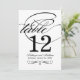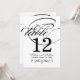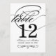 Sweeping black calligraphy and graceful flourishes on a clean white background bring dramatic sophistication to this wedding table number card. The bold flowing script creates a timeless centerpiece for formal and black-tie reception tables. The couple's names, wedding date, and table number are easy to personalise. Each table number must be individually personalised and added to the cart one at a time.