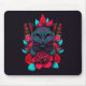 Elegant Black Cat Surrounded by Red Roses | Mouse Pad