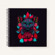 Elegant Black Cat Surrounded by Red Roses | Notebook