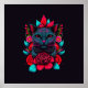 Elegant Black Cat Surrounded by Red Roses | Poster
