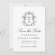 Announce your wedding date with timeless elegance using this classic monogram save the date card. The front of the design features your monogram initials centered within an ornate crest of intricate black chinoiserie and baroque-inspired motifs, creating a refined, heirloom-style look. “Save the Date” is displayed in elegant black calligraphy, with your names, wedding date, and location shown below in traditional serif lettering. The back of the card showcases your vertical engagement photo framed in white, with space beneath to include your wedding website and QR code for easy guest access. A detailed black and white chinoiserie floral pattern with Victorian elegance completes the design, adding contrast and sophistication. Perfect for couples planning a formal, classic, or timeless wedding, this save the date card sets a polished tone for your wedding stationery suite.