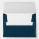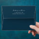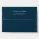 This elegant wedding envelope features a minimalist design with a solid navy blue background and crisp white text. The layout is centred, showcasing a sophisticated cursive font for the names and a clean serif font for the address, creating a balanced and formal appearance. Its simple yet refined style conveys sophistication and clarity, making it perfect for weddings or other formal events. The high-contrast colour palette enhances readability while maintaining an air of elegance.