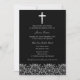 Black & Silver Baptism Invitation. Silver Swirl damask design with heart cross. Customise with your own details. Please note all flat images!