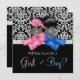 Adorable African American baby boy and girl black damask gender reveal shower invitations. This elegant black damask gender reveal baby shower invitation is easily customised for your event by adding your event details, font style, font size & colour, and wording.