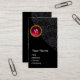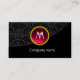ELEGANT BLACK DAMASK PINK RUBY GEMSTONE MONOGRAM BUSINESS CARD