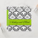 Elegant Black Damask Wedding Invitation Green. Customise with your information.