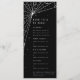 An elegant diamond spider web and stars against a black background. Room for four courses plus extra details at the bottom. All text is fully editable, so you can easily add or delete text and change the font style/size/colour/layout to suit your needs. The back is mostly blank, so more text can be added there if you wish. This design is available in other colours, on different sized card-stock and also on coordinating invitations and accessories.