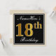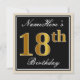 Elegant, Black, Faux Gold 18th Birthday + Name Invitation