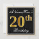 Elegant, Black, Faux Gold 20th Birthday + Name Invitation