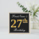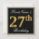 Elegant, Black, Faux Gold 27th Birthday + Name Invitation