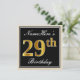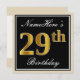 Elegant, Black, Faux Gold 29th Birthday + Name Invitation