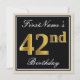 Elegant, Black, Faux Gold 42nd Birthday + Name Invitation