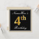 Elegant, Black, Faux Gold 4th Birthday + Name Invitation